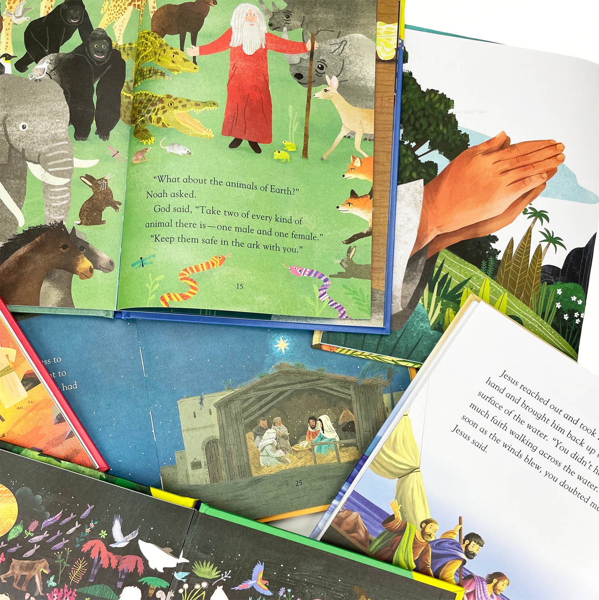 The beautiful first library of Bible stories includes 8 hardcover illustrated books in a sturdy decorative slipcase. Best-loved stories include Adam and Eve, Noah, Jonah, Ruth and Naomi, while also featuring stories of Jesus and His disciples, parables, and miracles. A beautiful Christian gift for kids that makes a lovely Christening gift, Baptism gift, or First Communion gift.