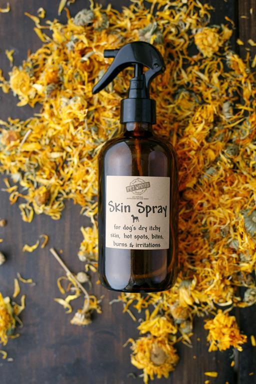 For dog’s dry itchy skin, hot spots, bites, burns and irritations.